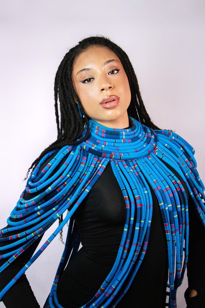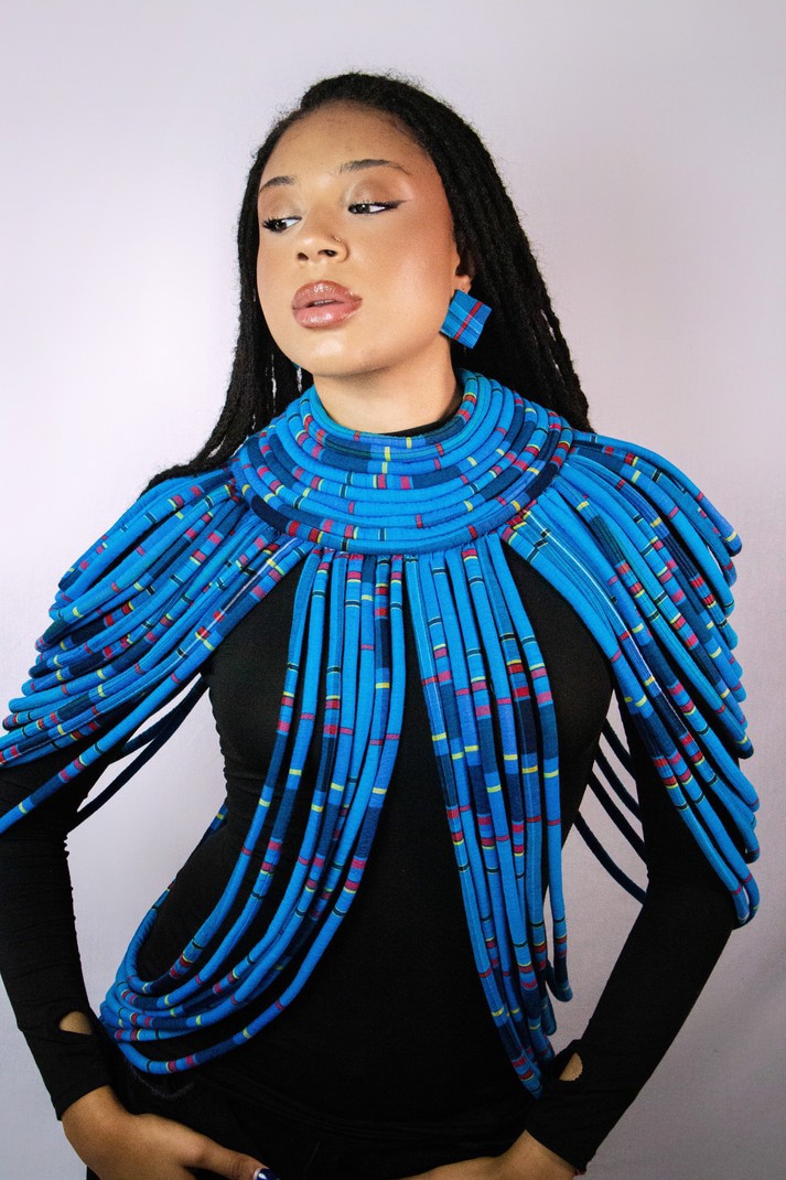 Wear this strong piece with dignity and reveal the queen who is in you. We named her 𝗪𝗔𝗭𝗜: the one who surpasses everyone (first name Bété). 👸 This cape necklace simply sits on the shoulders and dresses you majestically. It will match perfectly with any dress, skirt or pants. 👸 But this royal necklace will awaken the queen in you if you wear it over a top or a sober city or evening dress. 👸 It is entirely created by hand from strings covered with wax. 👸 The neck circumference can be adjusted and adjusted to your liking. An undeniable charming asset! . 🦋 Let your Afro chic side speak 🦋 . - 100% cotton wax fabric