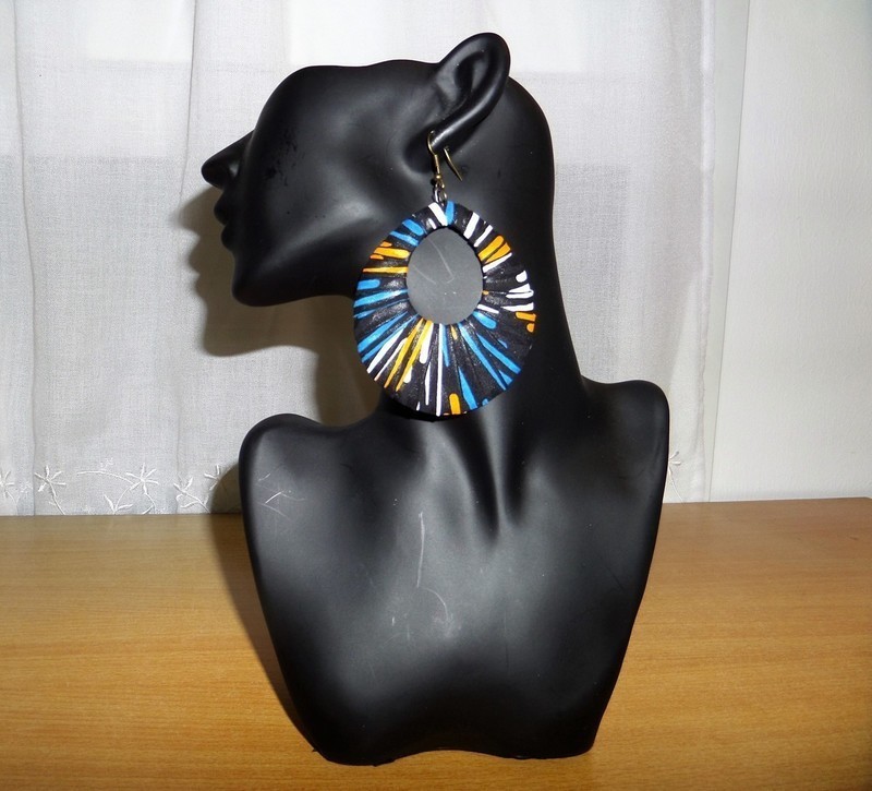 Ces boucles d'oreilles sont faites avec du tissu africain .
