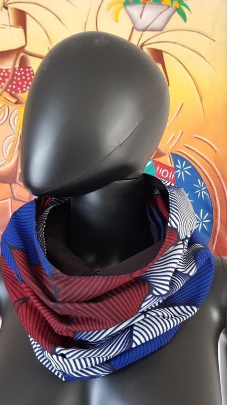 Snood en Wax 100% coton qui vous gardera bien au chaud.