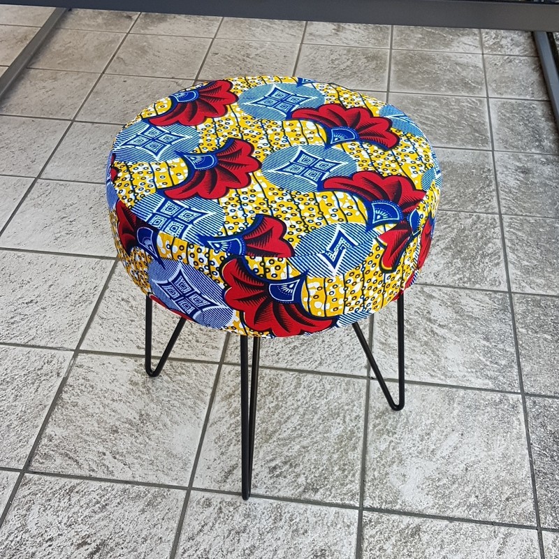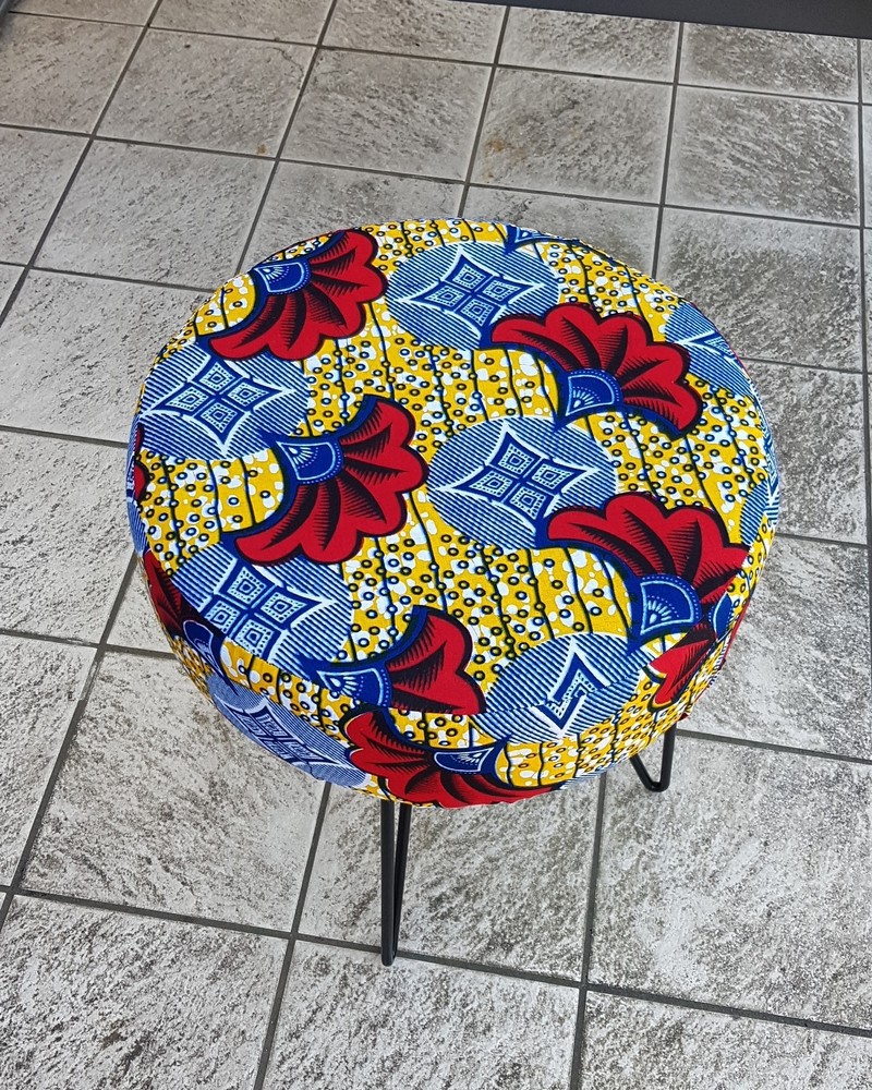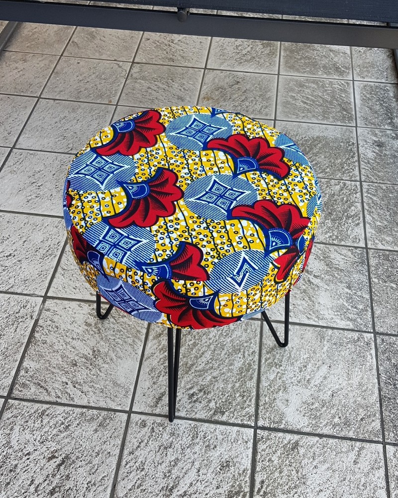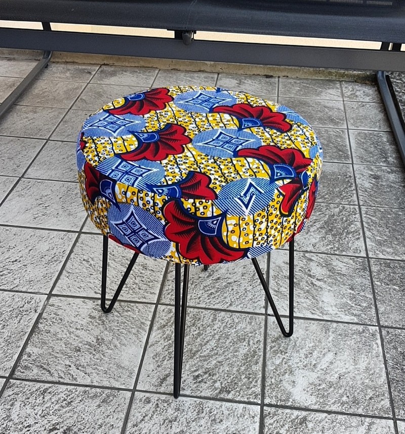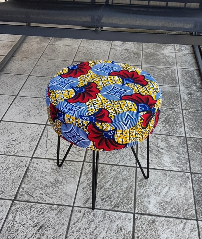 Wax stool Know how to stand out, go beyond decorative standards! make your interior a pleasant and welcoming place by bringing the trendy and modern wax touch. This stool offers you a lightly padded seat for more comfort. Metal foot which gives it a modern, design, natural and ethnic look. Give an African and original touch to your interior! I treat the stools by waterproofing the wax fabric, it prevents stains and dirt. This process makes the fabrics stronger while retaining the suppleness of the wax and the vibrant colors. Wax 100% cotton ** Size: L36 x D36 x H38cm ** 🔺️🔺️SHIPPING via mondial relay 🔺️🔺️ **