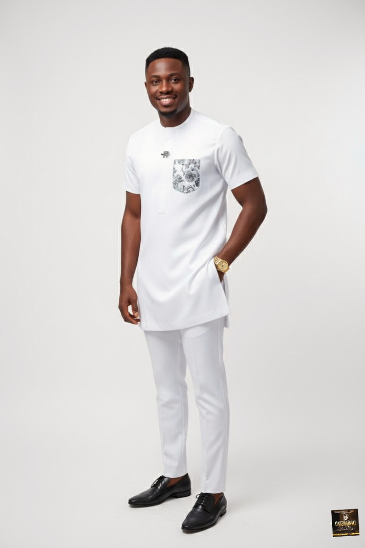 Stay effortlessly stylish in this white senator outfit, designed for the modern man who values class and culture. Crafted from smooth, durable fabric, this two-piece senator suit features elegant embroidery on the chest pocket and placket, giving it a refined finish.