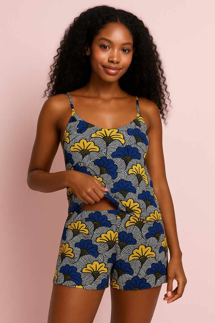 Add a touch of luxury to your nights with our blue and yellow floral pajama set, created for women who want to feel effortlessly stylish while staying comfortable.