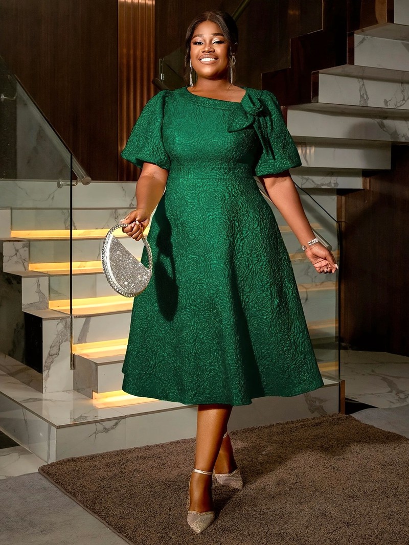 Women's Plus Size Rose Bell Sleeve A-Line Dress, Elegant Semi-Formal Design Suitable for Commuting, Birthday Parties, Wedding Guest Attire, Dinner, and Various Occasions