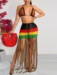 New spring and summer Women's sexy beach vacation backless lace-up hollow mesh Crochet tassel skirt two-piece set