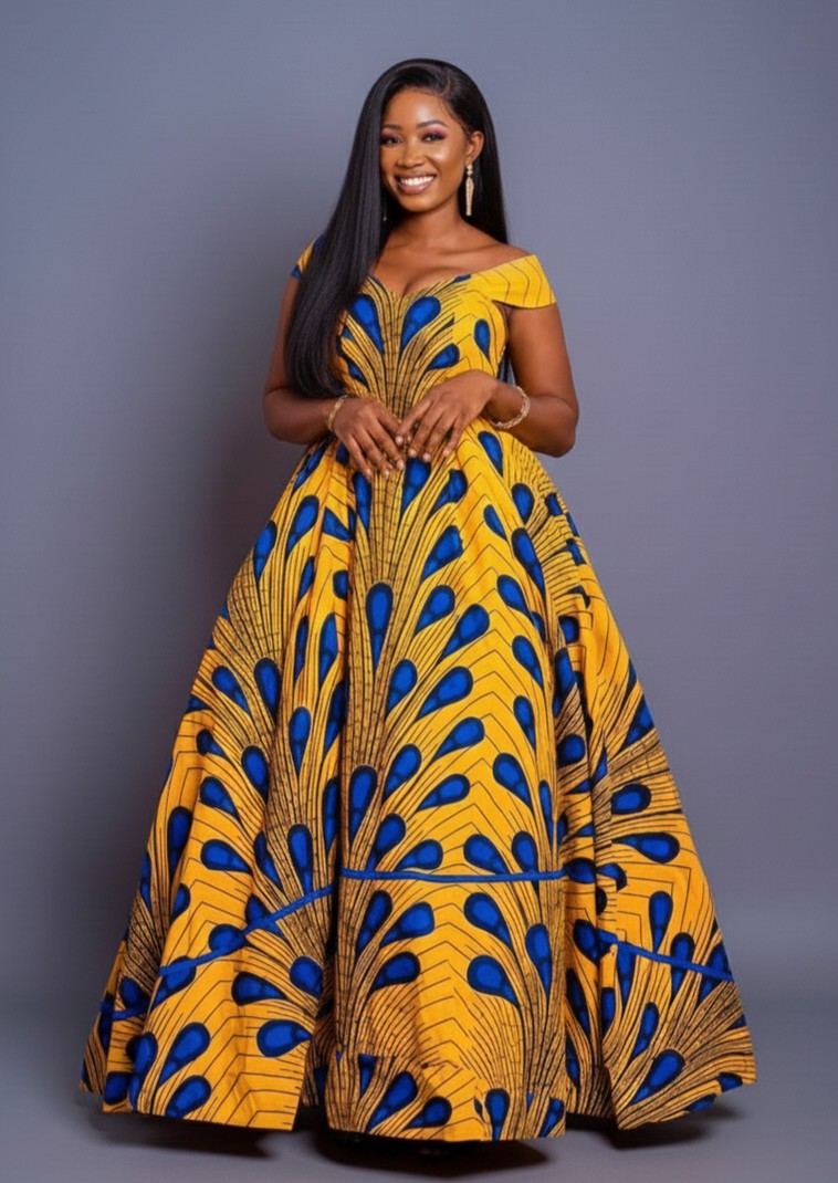 Make a statement with this vibrant Yellow and Blue Ankara Print Maxi Dress—perfect for weddings, parties, and cultural celebrations. Expertly handmade in Africa using 100% cotton, this stunning dress blends tradition, elegance, and comfort.