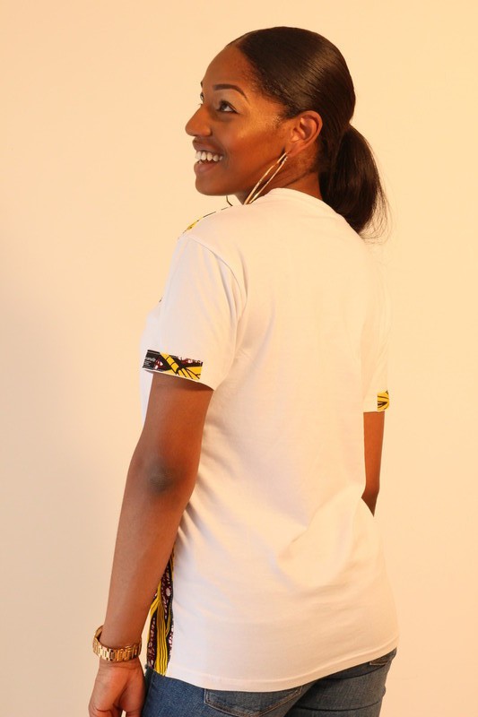 T-shirt in cotton and wax (African fabric). The model wears a mixed XS size.