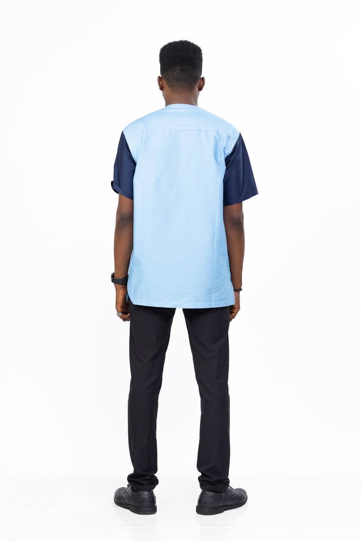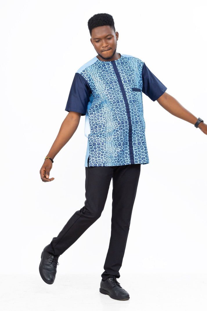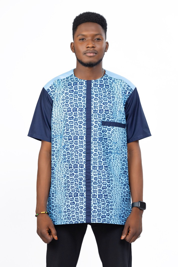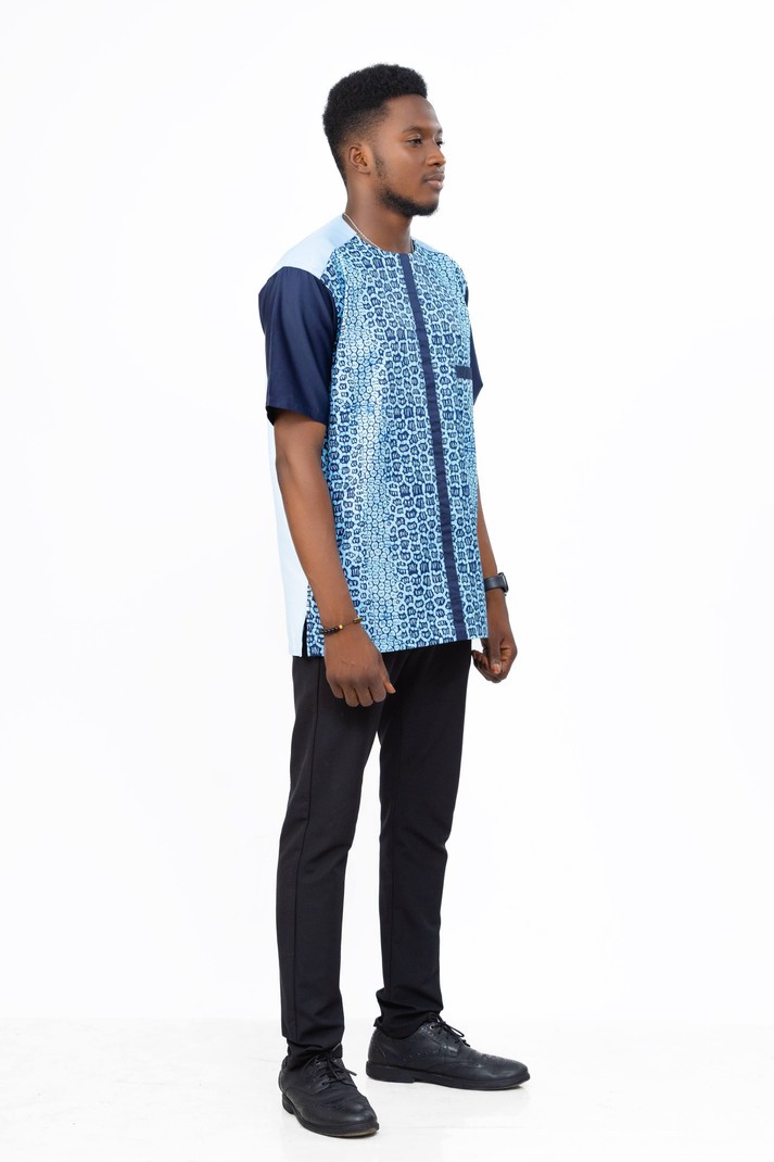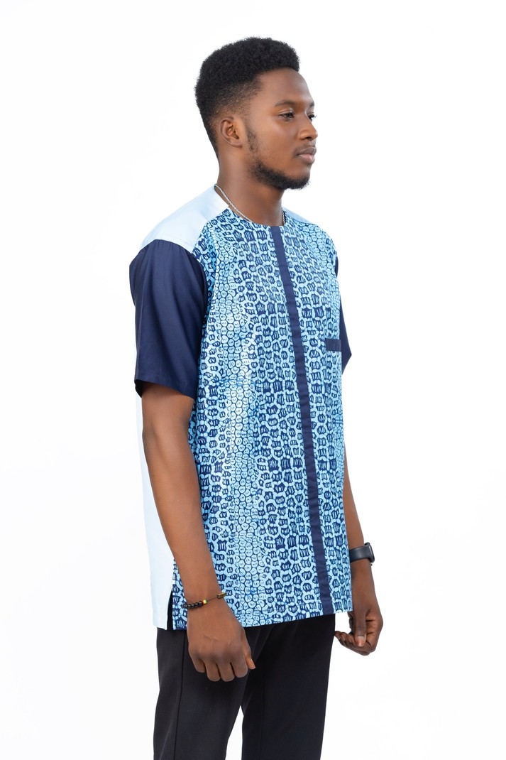 This beautifully crafted African men's shirt is designed for the modern gentleman who values both comfort and sophistication. Featuring a popular blue pattern of Ankara fabric, this shirt merges cultural heritage with contemporary flair.