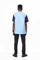 The short-sleeve design is perfect for staying cool and stylish, while the bold blue tones, complemented by navy accents, make it versatile for both casual outings and special occasions. A sleek chest pocket adds a touch of functionality without compromising the design.