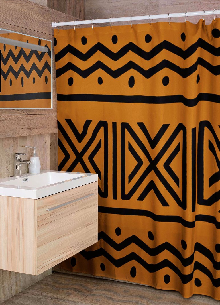 Elevate your bathroom decor with our bold Zigzag Mudcloth Shower Curtain! Inspired by African textiles, this unique curtain adds an adventurous touch. Experience the ultimate showering experience with our high-quality, durable design. Unleash your inner risk-taker and upgrade your bathroom now! Product Features = Designed for standardized bath tubs, fitted with C-shaped curtain hooks, = Tough durable waterproof polyester fabric = Prevents water from splashing out of the shower stall. = One-side print using heat dye sublimation technique for long-lasting effects. = Both functional and decorative. = Vibrant colors = CURTAIN SIZE - W 36"x H 72"-91cmx182cm Delivery Time This item will be processed within 7-15 business days (Excluding Weekends and Holidays). Once products ships it can take up to 15 Business days depending on your location. Out of Stock items can be requested by emailing us at [email protected]