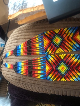 I wavered between 2 and 3 stars. The seller is very responsive and even included a nice bracelet in the package but was slow to ship and The item is not as pictured and I don’t like what I received. I had plans to wear it to an event but can’t because the colors are off and not the same as the item pictured so it doesn’t match my outfit ☹️Also the beads on the item t received are larger than the item pictured. The craftsmanship is very good however.