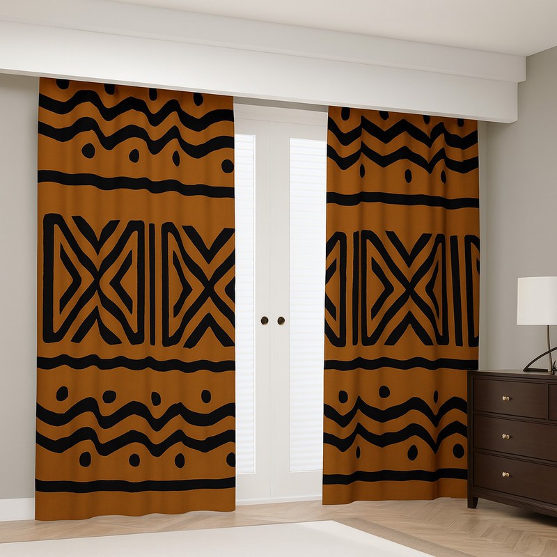 Our African Blackout Curtain Mudcloth Print (Two-Piece) adds a unique, colorful touch to any room. Each curtain is made with premium materials and soundproof backing insulation to provide a peaceful and private space. The eye-catching print adds an artistic element to any home. Product Description . Made of 100% polyester with U-V resistant and shading properties • Package & width includes the two pieces of curtains measured at (W)106cm x (H)114cm(41.7"x 44.9") • Perfect for window or everywhere it serves as a decorative & privacy purpose. • Both functional and decorative. • Hooks and rings will be sent with the curtain Delivery Time This item will be processed within 7-15 business days (Excluding Weekends and Holidays). Once products ships it can take up to 15 Business days depending on your location. Out of Stock items can be requested by emailing us at [email protected]
