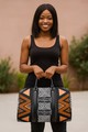 African Duffel Leather Bag for Travel Mudcloth Geometric Print