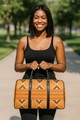 African Leather Bag for Travel Mud Cloth Tribal Orange Print