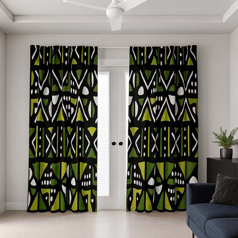 Transform your space with our bold Afrocentric Blackout Curtains! The stunning olive green color brings energy and vibrancy to any room, while the blackout feature ensures privacy and restful sleep. Upgrade your style and sleep quality with this set of two curtains.