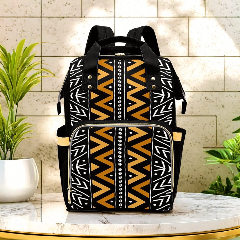 Embrace your adventurous side with the Cowrie Print Tribal Backpack. With a stylish native fashion design, this versatile bag can be used as a diaper bag for parents on the go or as a statement piece for your next outdoor excursion. Be bold, be fearless with this must-have accessory! Product Description * Made from high-grade nylon, lightweight yet sturdy. * Wide open design, large interior with 1 zippered pocket and 4 elastic pockets. * One front section with 3 elastic pockets and 1 net pocket for milk bottles and other items. * Padded back panel and adjustable shoulder straps for ultra comfort and stability. * Unisex design makes the diaper bag a nice choice for both mom and dad. Delivery Time This item will be processed within 3-7 business days (Excluding Weekends and Holidays). Once products ships it can take up to 15 Business days depending on your location. Out of Stock items can be requested by emailing us at [email protected] Care Instructions Machine wash cold inside out. Gentle cycle with mild detergent and like colors. Do not use bleach or fabric softener. Do not tumble dry. Hang to dry to ensure maximum shelf life. Iron inside out if necessary. Do not iron the print. Do not dry clean.