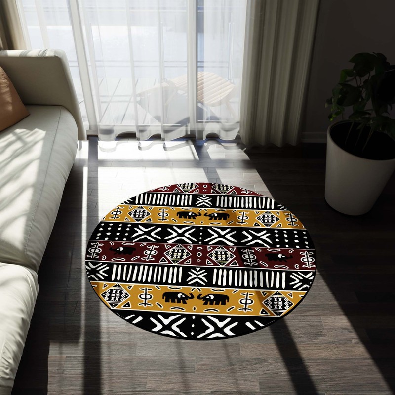 Embrace your wild side with our Ethnic Round Multicoloured Rug. Made with authentic African mudcloth, this bold carpet adds a touch of adventure and risk to any room. Perfect for those who like to take chances and stand out from the crowd. Get yours today! Product Description = Made of 100% Polyester = Non-slip backing. = Suitable Rooms: Home Office, Parlor, Bedroom = Stain resistant, easy to vacuum, and perfect for any room and decor. = Due to transportation needs, we will fold and curl the rugs and carpets, so there will be some creases on the products you receive. = RUG SIZE - L 23.6" x W 23.6" - (60cm x 60cm) Delivery Time This item will be processed within 7-15 business days (Excluding Weekends and Holidays). Once products ships it can take up to 15 Business days depending on your location. Out of Stock items can be requested by emailing us at [email protected]