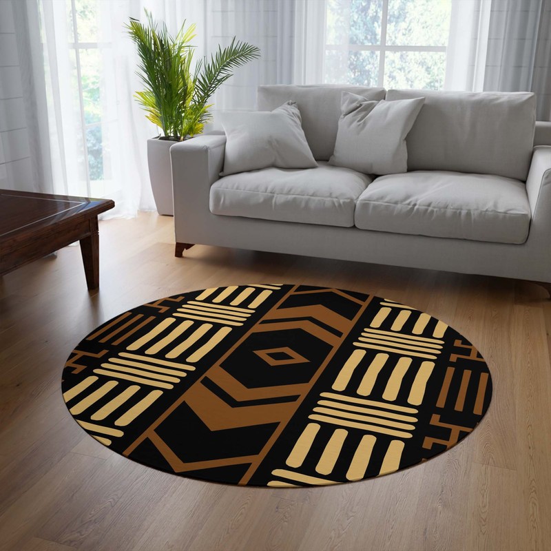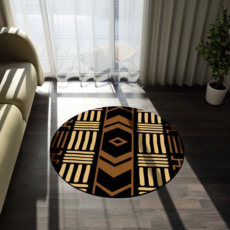 Make your living room come alive with our African Ethnic Carpet. This beautiful round rug adds an exotic touch to any space, inviting you to step into a world of vibrant colors and patterns. Create a cozy and artistic atmosphere with this unique addition to your home decor!