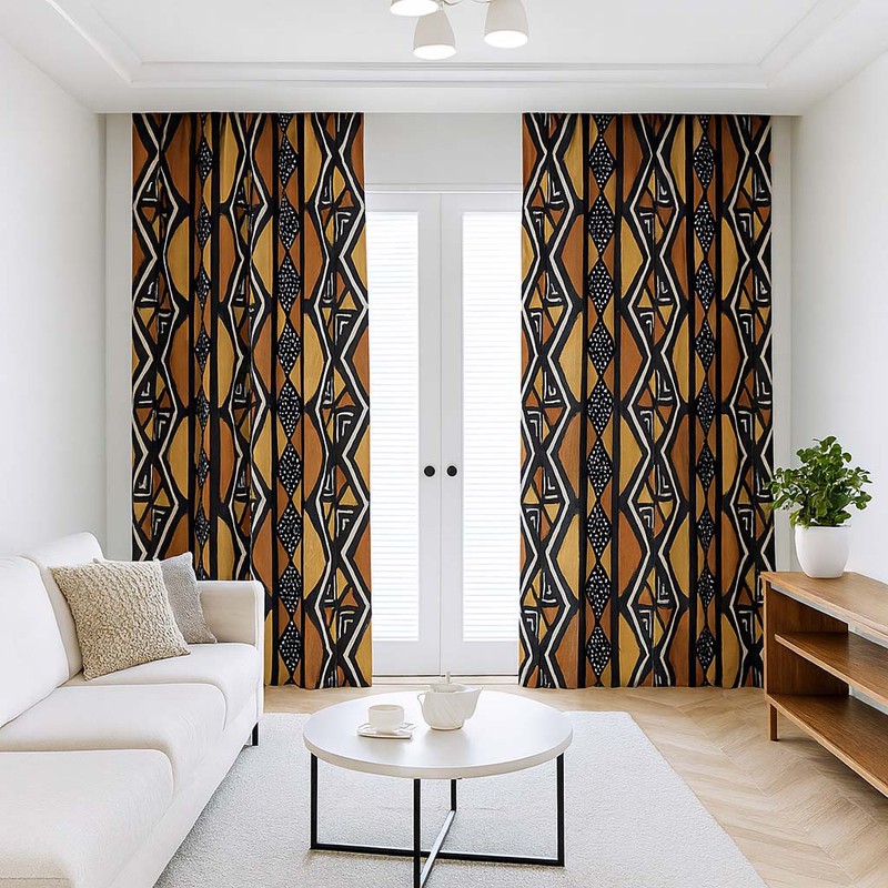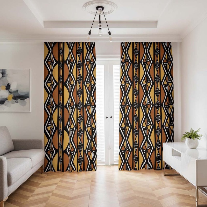 Embrace the boldness and adventure of these Luxury Brown Blackout Curtains adorned with African Mudcloth patterns. Keep the sun's rays and prying eyes at bay while adding a touch of global style to your home. Set includes two panels for a complete and luxurious look. Take a risk and add some daring style to your space!
