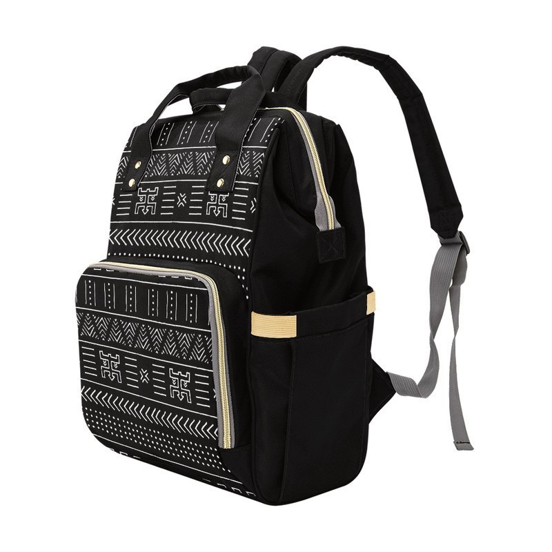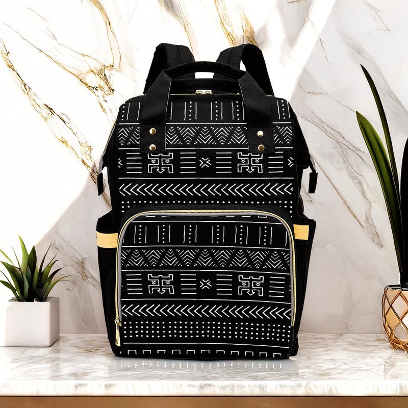 Embrace your adventurous spirit with our Native African Print Backpack! Perfect for any daring journey, this backpack features bold Afrocentric prints and functions as both a stylish accessory and practical diaper bag. Step out in style and comfort with this unique and versatile bag. Product Description * Made from high-grade nylon, lightweight yet sturdy. * Wide open design, large interior with 1 zippered pocket and 4 elastic pockets. * One front section with 3 elastic pockets and 1 net pocket for milk bottles and other items. * Padded back panel and adjustable shoulder straps for ultra comfort and stability. * Unisex design makes the diaper bag a nice choice for both mom and dad. Delivery Time This item will be processed within 3-7 business days (Excluding Weekends and Holidays). Once products ships it can take up to 15 Business days depending on your location. Out of Stock items can be requested by emailing us at [email protected] Care Instructions Machine wash cold inside out. Gentle cycle with mild detergent and like colors. Do not use bleach or fabric softener. Do not tumble dry. Hang to dry to ensure maximum shelf life. Iron inside out if necessary. Do not iron the print. Do not dry clean.