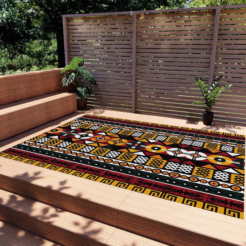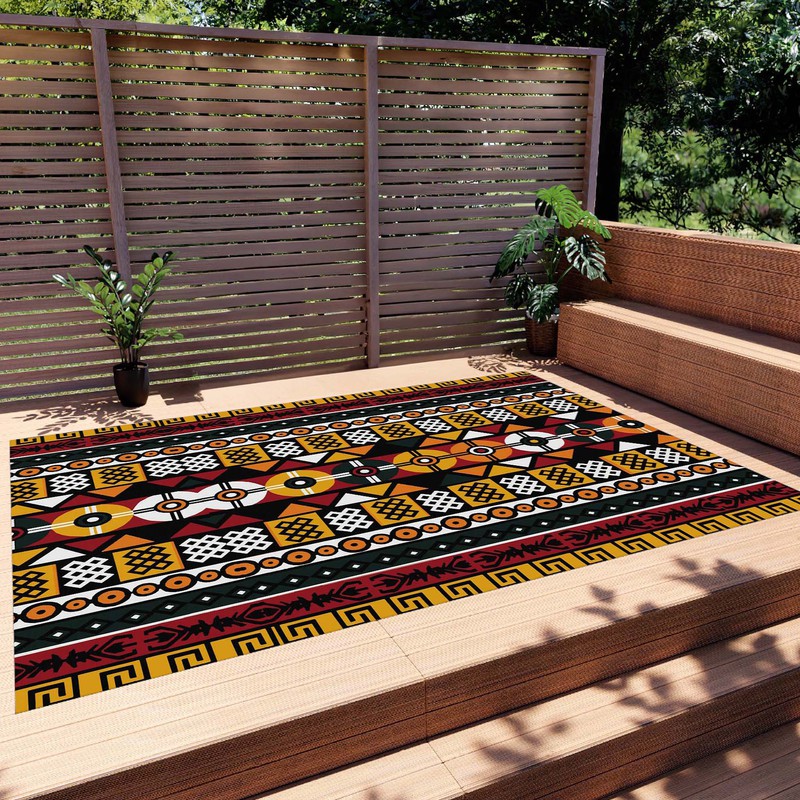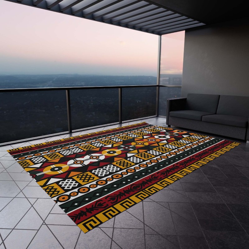 Transform your outdoor space into a bold and adventurous tribal habitat with our Native Outdoor Tribal Rug. Made with durable mudcloth material, this rug adds a touch of culture and risk-taking to any setting. Make a statement and embrace your wild side with this one-of-a-kind carpet.