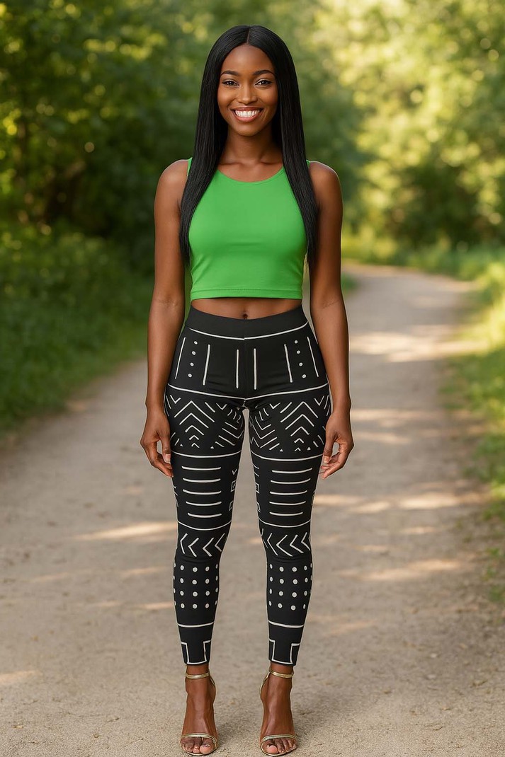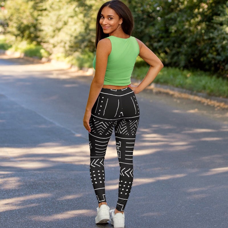 Step up your style game with these luxuriously tribal print leggings in black and white. Made with high-quality fabric, these leggings not only make a statement, but also provide supreme comfort and durability. Perfect for adding an artistic touch to any outfit.