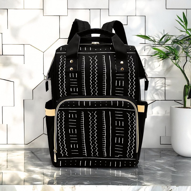 Unleash your bold, adventurous spirit with our Symbolic African Print Backpack in sleek Black! Ideal for on-the-go parents, this versatile bag doubles as a stylish diaper bag. Embrace unique style and convenience with our daring design. Order now and be ready for your next big adventure! Product Description * Made from high-grade nylon, lightweight yet sturdy. * Wide open design, large interior with 1 zippered pocket and 4 elastic pockets. * One front section with 3 elastic pockets and 1 net pocket for milk bottles and other items. * Padded back panel and adjustable shoulder straps for ultra comfort and stability. * Unisex design makes the diaper bag a nice choice for both mom and dad. Delivery Time This item will be processed within 3-7 business days (Excluding Weekends and Holidays). Once products ships it can take up to 15 Business days depending on your location. Out of Stock items can be requested by emailing us at [email protected] Care Instructions Machine wash cold inside out. Gentle cycle with mild detergent and like colors. Do not use bleach or fabric softener. Do not tumble dry. Hang to dry to ensure maximum shelf life. Iron inside out if necessary. Do not iron the print. Do not dry clean.