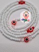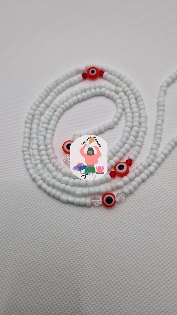 Magnificent white Baya with Greek eye, sign of luck Color: white and red Quantity: 1 necklace Type of attachment: wire Length: 110cm ***The jewels are created in size L*** if you want a smaller or larger size large, please specify when purchasing. For this reason I do NOT offer exchanges!! ###Modification possible### - clasp = 2€ - size over 120cm = 2€ - smaller size = FREE - other color = FREE - elastic thread = FREE Please send me a message for any modification before payment PLEASE A word of advice: Measure your waist or hips to be sure when making your choice. Size guide (trouser size and waist circumference): 34: 75cm 36: 80cm 38: 90cm 40: 100cm 42: 105cm 44: 110cm 46: 115cm 48: 120cm 50: 125cm 52: 130cm Contact me for other sizes by message. !!A photo of the personal creations is always sent to you for validation before shipment!! kidney necklaces also called: bine-bine, baya, waistbeads, waist beads, bayas, are jewelry worn by women for generations. They are used for different purposes. You can wear one or more to embellish a set of lingerie, a swimsuit or even over a garment, as a belt. INSTAGRAM: Emmy creations