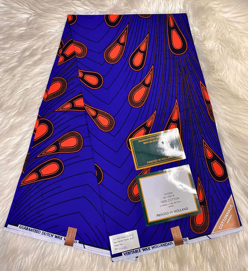 This Beautiful African Wax Print Ankara Fabric is 100% Cotton 6 yards 45 inches wide/ 5.486 metres long and 1.143 metres wide in one piece