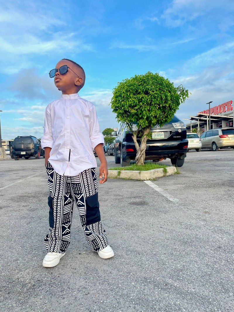 It comes with a plain cotton long-sleeve shirt and a print trouser.