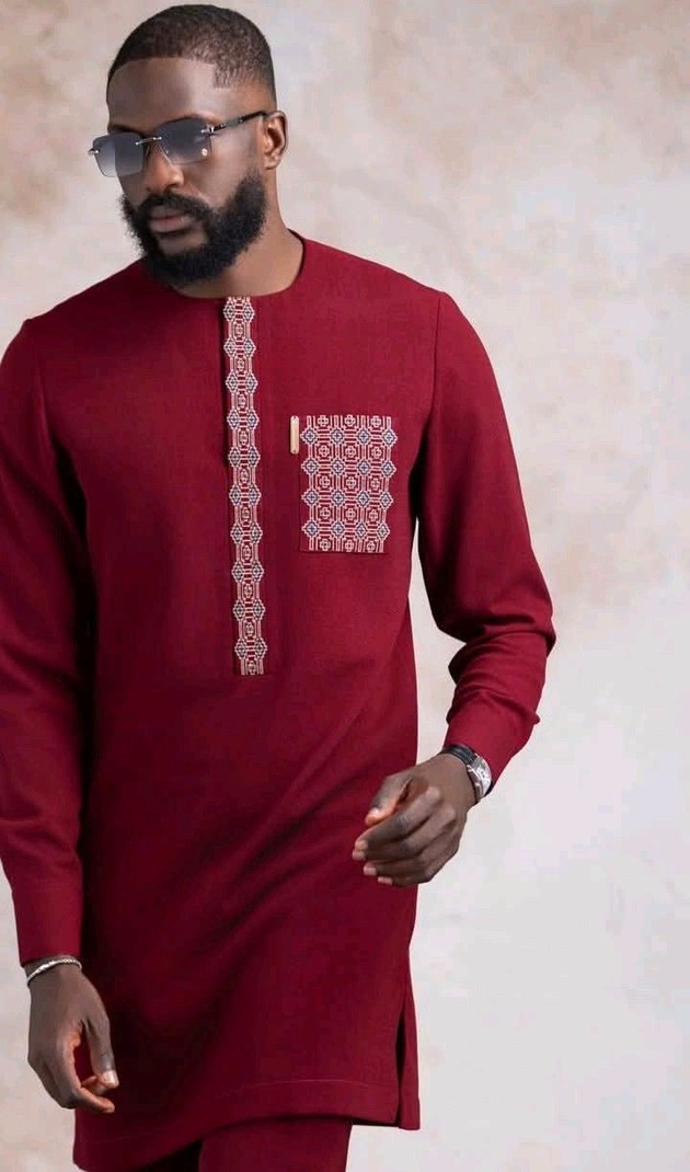 This elegant outfit is handmade and designed with high quality material. It is suitable for all kinds of occasion and comes with a matching pant with a draw string for wearers ease.