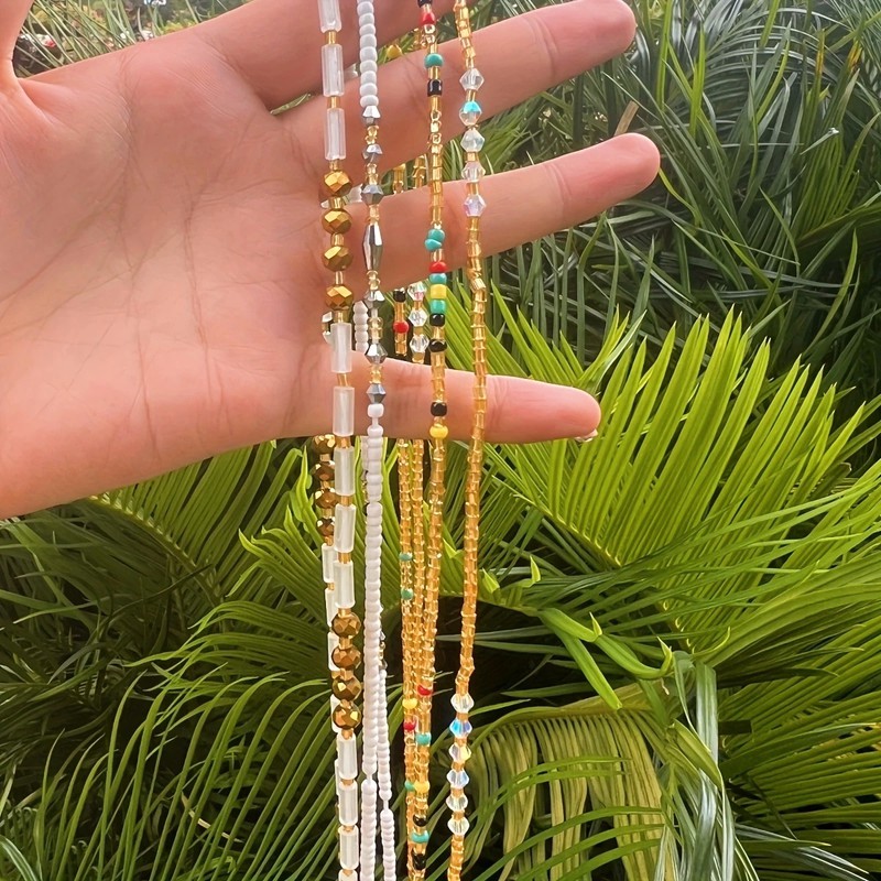 1 Set of 4 Bohemian Holiday Style Handmade Glass Beads Waist Chain Personality Fashion Large Size Adjustable 130Cm Golden Luminous Body Chain Simple Fashion All-Match Body Chain Suitable for Women'S Daily And Holiday Wear