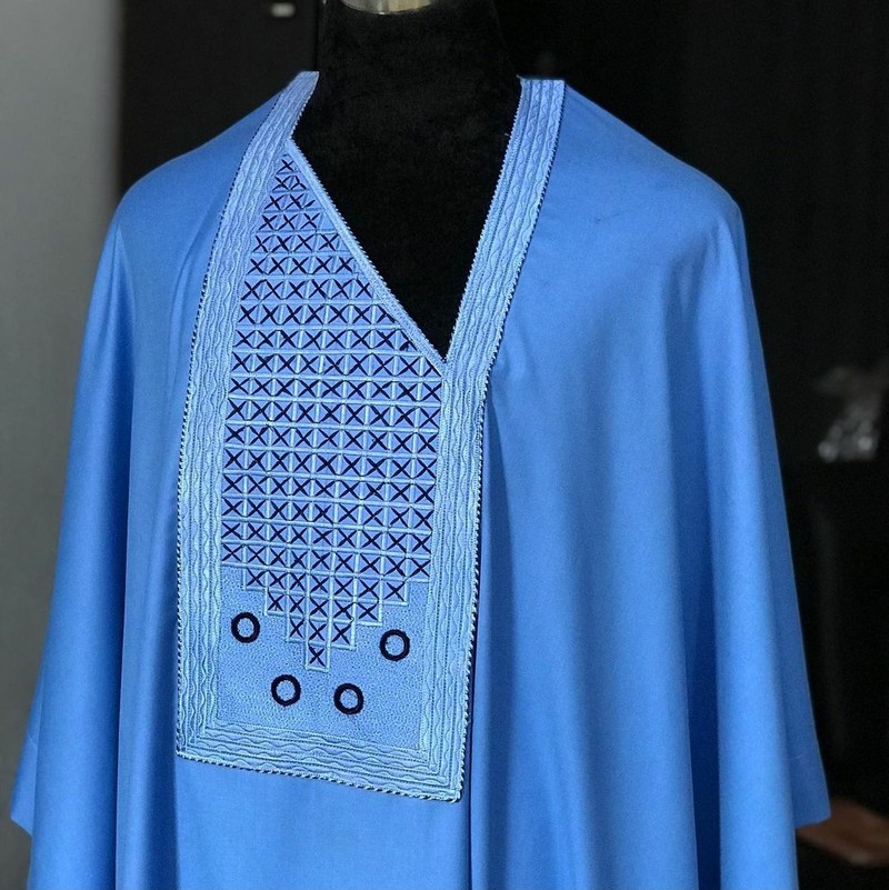 Ensembles agbada 3 pièces avec un pantalon assorti et un chapeau personnalisé. Vous pouvez personnaliser le chapeau à votre taille préférée. La livraison est sous 7 jours ouvrables Couleur: bleu Genre: Pour Lui Matière: Cachemire, Coton