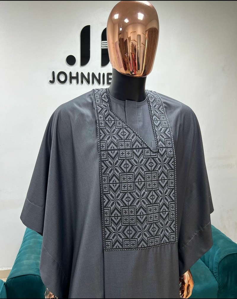 Ensembles agbada 3 pièces avec un pantalon assorti et un chapeau personnalisé. Vous pouvez personnaliser le chapeau à votre taille préférée. La livraison est sous 7 jours ouvrables Couleur: gris Genre: Pour Lui Matière: Cachemire, Coton