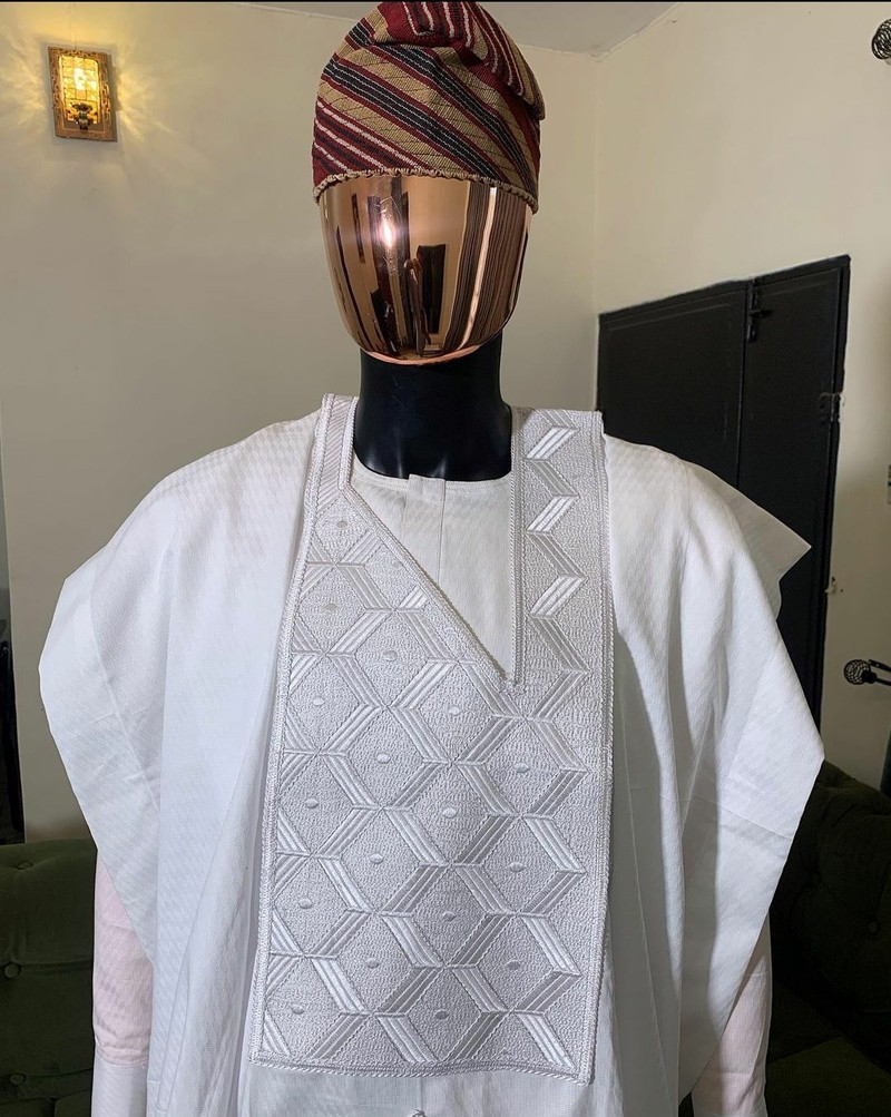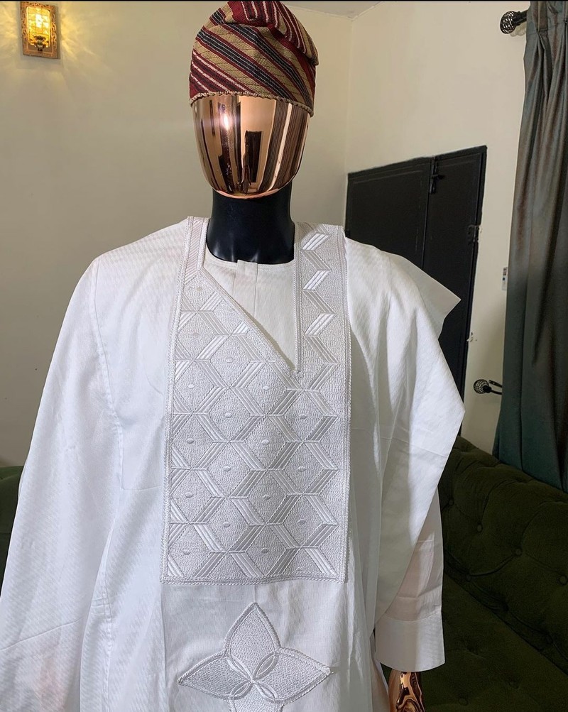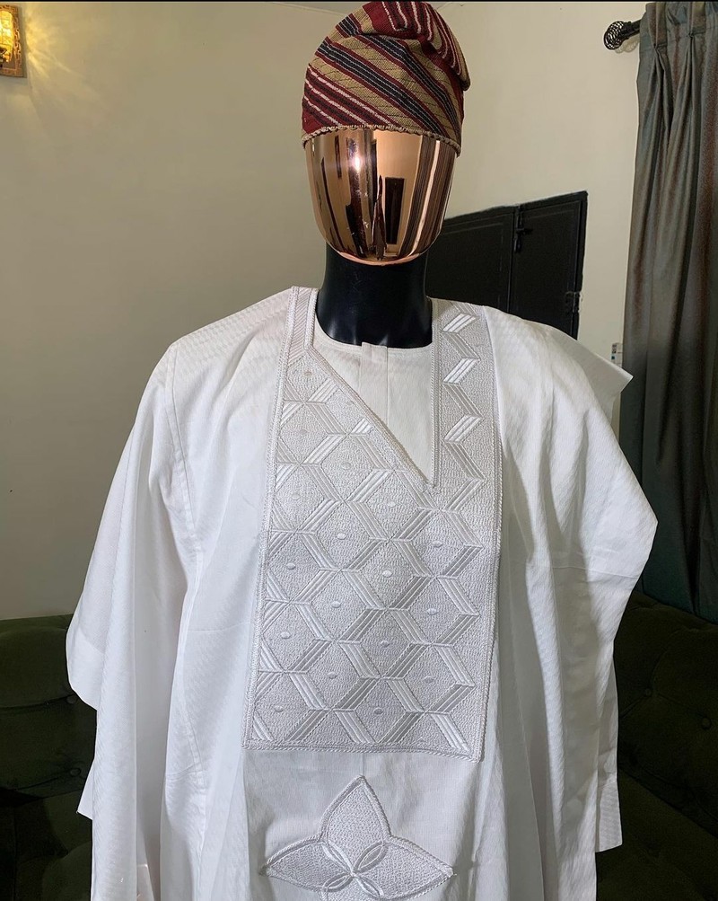3 pieces agbada sets with a matching pants and a customized hat. You can get the hat customized to your preferred size.. Delivery is within 7 working days