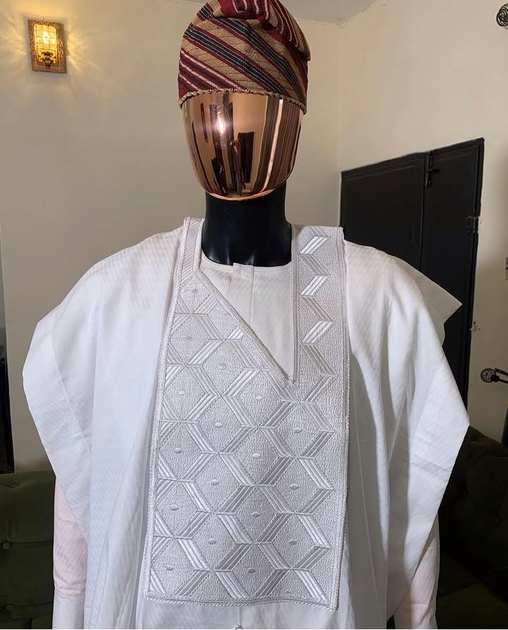 3 pieces agbada sets with a matching pants and a customized hat. You can get the hat customized to your preferred size.. Delivery is within 7 working days Color: White Gender: For Him Material: Cashmere, Cotton