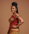 Fabric: Authentic Kente print and sequin-detailed fabric.