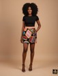 Bright, youthful, and stylish, this abstract print mini skirt is a must-have for fashion-forward women. The skirt features colorful geometric patterns in pink, yellow, blue, and orange, creating a lively artistic feel. Its high-waist design and structured fit highlight your shape, while the comfortable fabric ensures easy movement. Pair it with a fitted black or white top for a chic, casual, or semi-formal look. Material: crepe, handwoven aso-oke Color: Multicolor