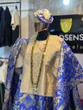 Blue Damask, gold-embroidered agbada with danshiki and matching pants WHAT YOU GET: An agbada Danshiki Matching kembe Matching cap