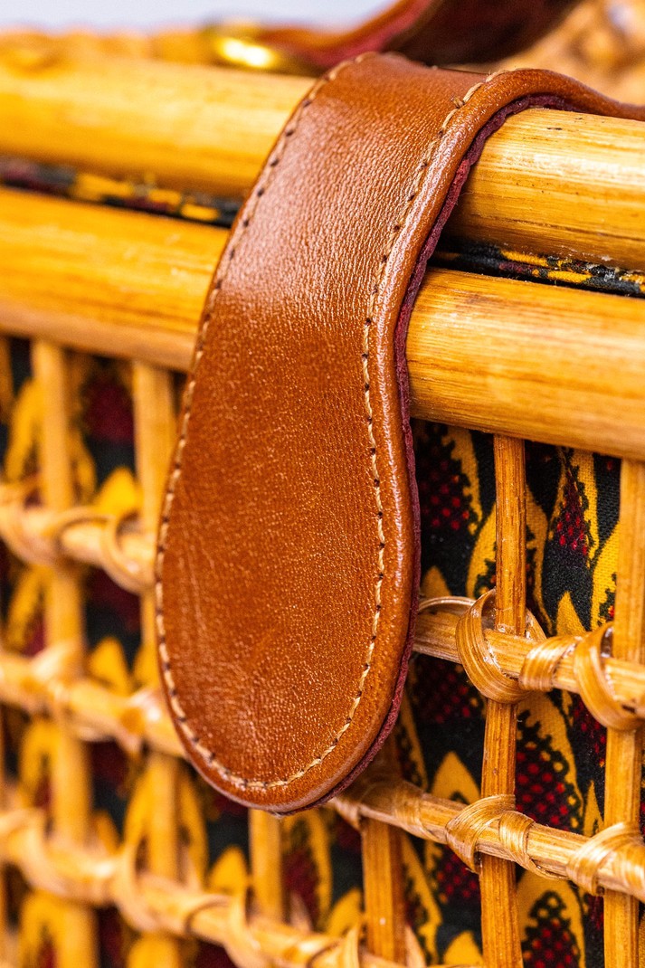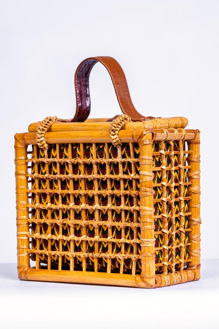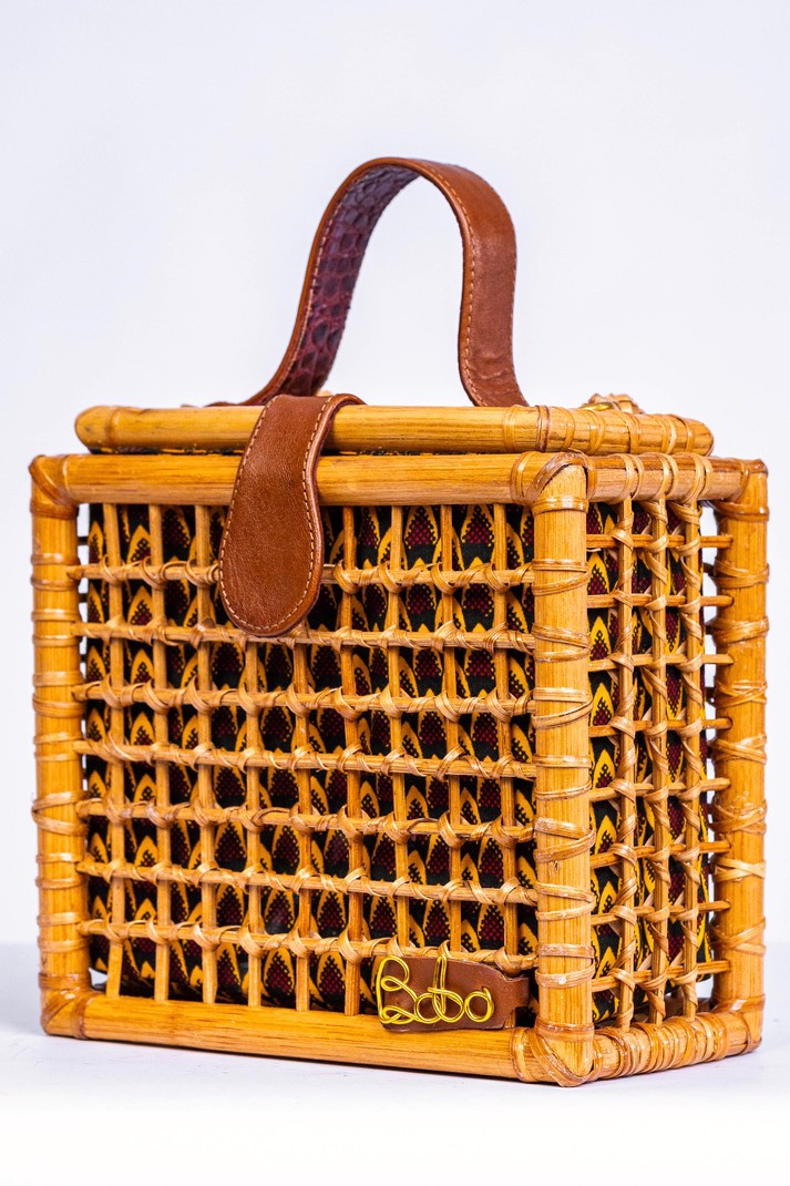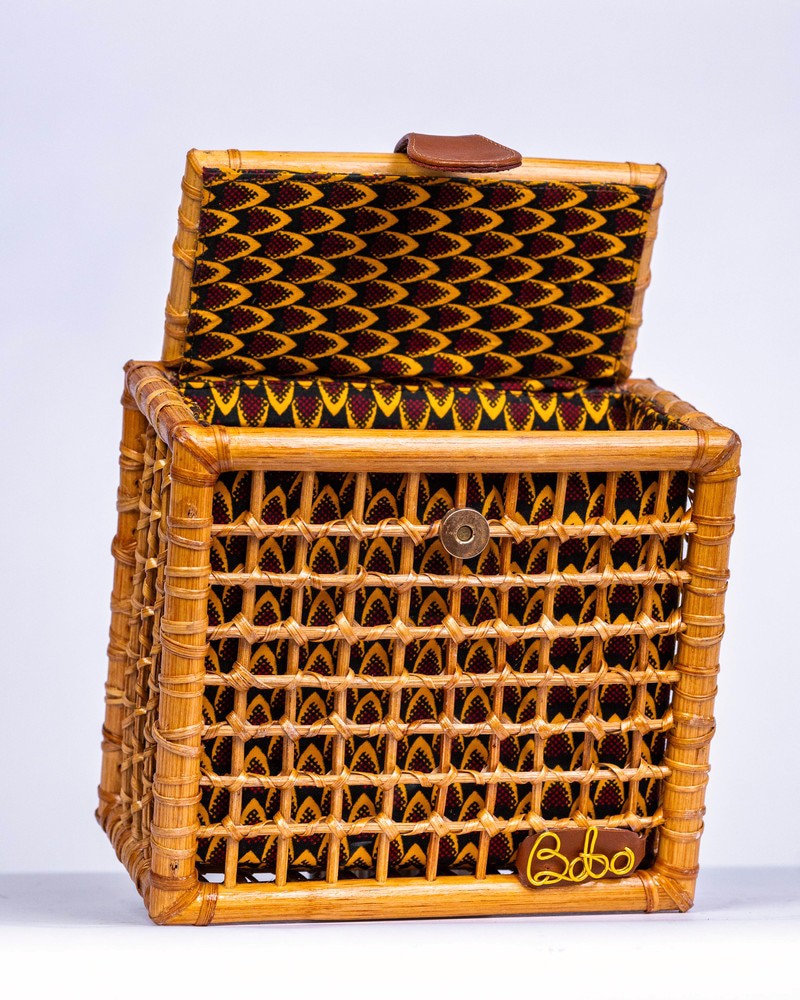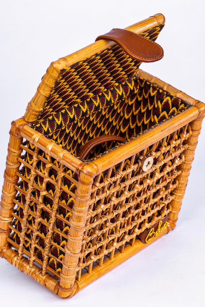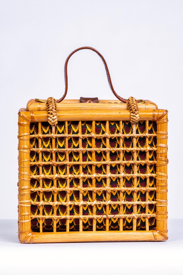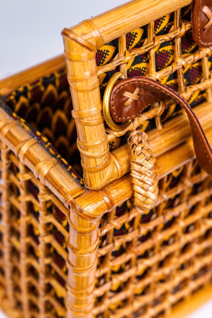 Fabriqué avec 100% canne et cuir finement tissé Fabriqué en Afrique🇬🇭 Dimensions; Largeur: 8 pouces Hauteur: 7 pouces Épaisseur: 4,5 pouces