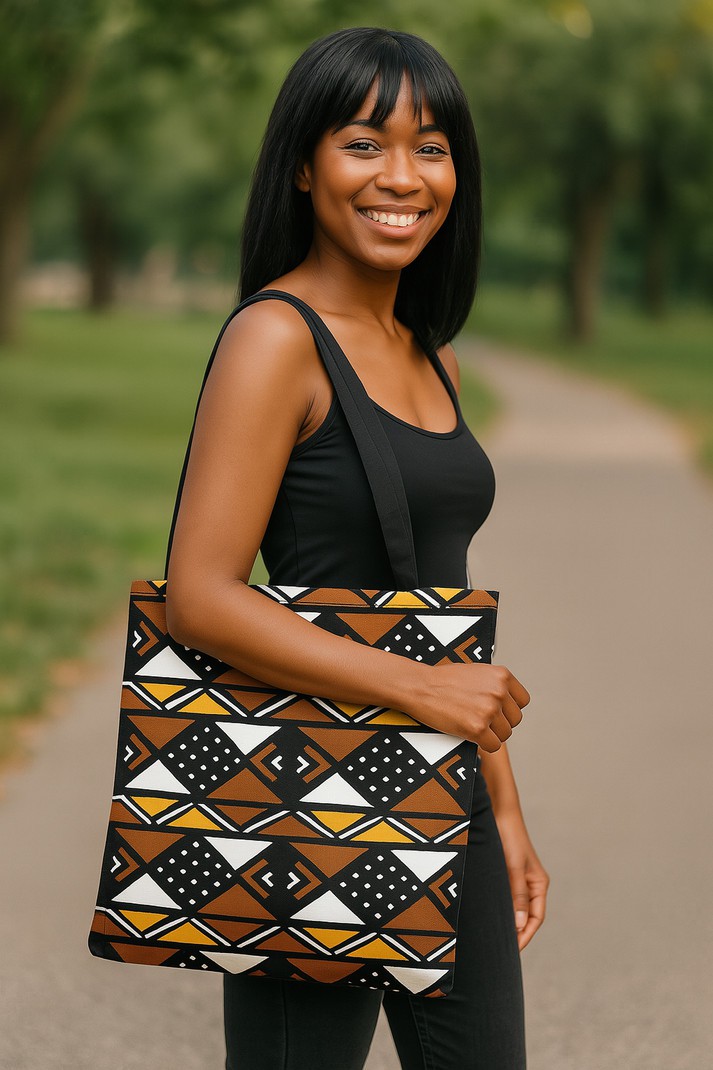 Take on the world with our African American Totes Bag! Featuring a bold Tribal Moroccan Print, this spacious bag will hold all your essentials for any adventure. Make a statement and show off your daring side with this stylish tote! Product Description • 510 g/m2. Made from high-grade canvas. • Durable and roomy enough for your daily items. • Lightweight canvas tote bag with sturdy handle is easy to carry. • Perfect for shopping and carrying your essentials. Delivery Time This item will be processed within 3-7 business days (Excluding Weekends and Holidays). Once products ships it can take up to 15 Business days depending on your location. Out of Stock items can be requested by emailing us at [email protected] Care Instructions Machine wash cold inside out. Gentle cycle with mild detergent and like colors. Do not use bleach or fabric softener. Do not tumble dry. Hang to dry to ensure maximum shelf life. Iron inside out if necessary. Do not iron the print. Do not dry clean.