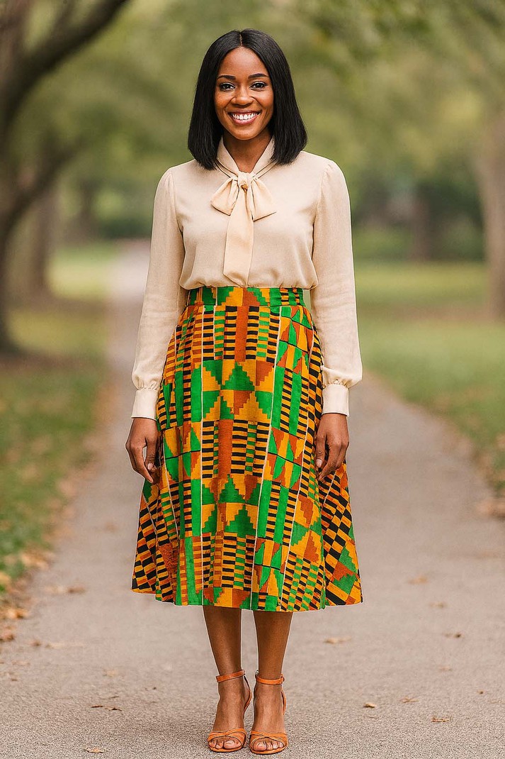 Unleash your bold and adventurous spirit with our African Ankara Skirt! Made with vibrant Kente pattern, this flared midi skirt will make a statement wherever you go. Embrace the unique and rich culture of Africa while standing out in style. Take risks and be inspired by this versatile and chic fashion piece!