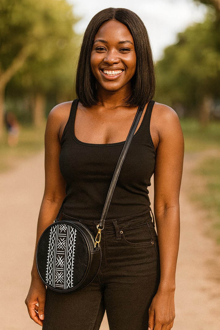 Unleash your adventurous spirit with our African Bag Sling Round in bold abstract black and white. Perfect for adding a unique touch to any outfit, this sling bag is handcrafted with authentic African fabric and features a comfortable round design. Embrace the unknown and carry your essentials in style! Product Description * 8.22 Oz. Made from high-grade PU leather. * Single zippered round closure. * One main compartment, big enough to pack cosmetic, sunglasses, Phone and etc. *Adjustable PU leather shoulder strap for easy and comfortable carrying. * Dimensions: 8.07"(L) x 2.07"(W) x 8.07"(H). Delivery Time This item will be processed within 3-7 business days (Excluding Weekends and Holidays). Once products ships it can take up to 15 Business days depending on your location. Out of Stock items can be requested by emailing us at [email protected] Care Instructions Machine wash cold inside out. Gentle cycle with mild detergent and like colors. Do not use bleach or fabric softener. Do not tumble dry to ensure maximum shelf life.