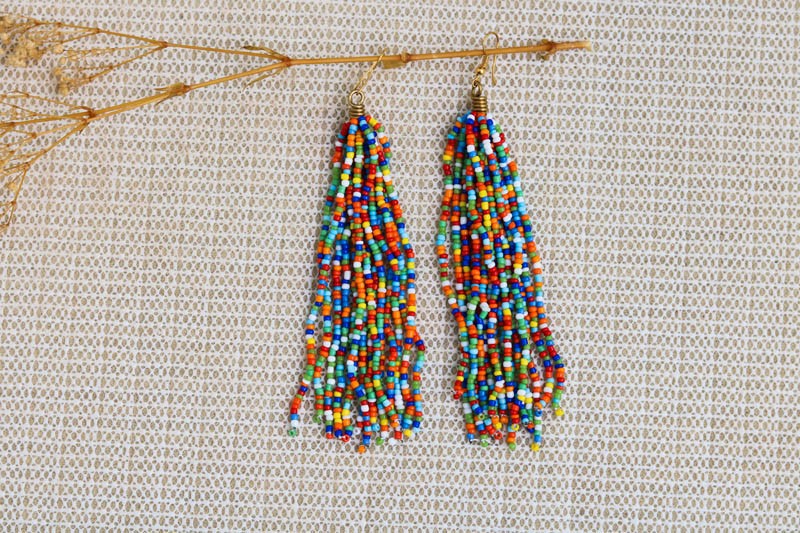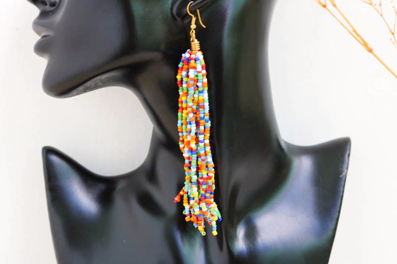 Boucles d'oreilles à pampilles perlées, boucles d'oreilles africaines, boucles d'oreilles perlées, boucles d'oreilles Boho, cadeau pour elle, boucles d'oreilles Fringe Ces boucles d'oreilles colorées sont très légères à porter toute l'année. Ils sont constitués de fines perles et sont très agréables à porter.