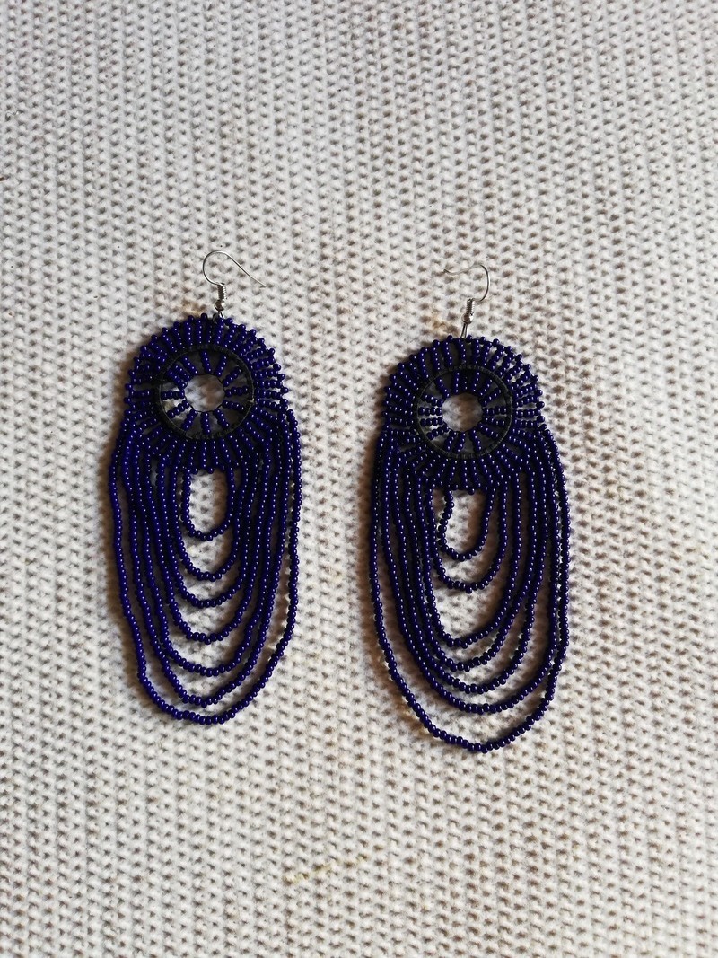 Beaded Tassel earrings, African earrings, Beaded earrings, Blue earrings, Boho earrings, Gift for her, Fringe earrings