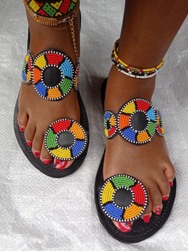 Sandales en perles africaines, sandales femmes, cadeau pour elle