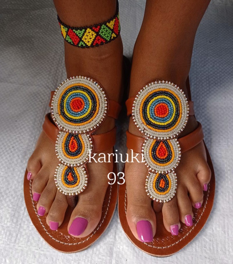 Sandales Masai Sandales perlées africaines Belles tongs Sandales colorées Cadeau pour elle Sandales perlées pour femmes Nous expédions via DHL Express Toutes les tailles sont disponibles puisque nous les fabriquons sur mesure. Merci de magasiner avec nous.
