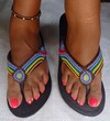 Sandales reçues et elles ont l'air incroyable. (Taille 42) Mon pied gauche est un peu plus grand que mon droit. La longueur totale de mon pied gauche du gros orteil au talon est de 27,5 cm. Bien qu'une taille 43 s'il y en avait une serait bien mieux pour moi. Heureusement, mon pied s'adapte juste à la sandale. Je suis donc heureuse de pouvoir les porter.
