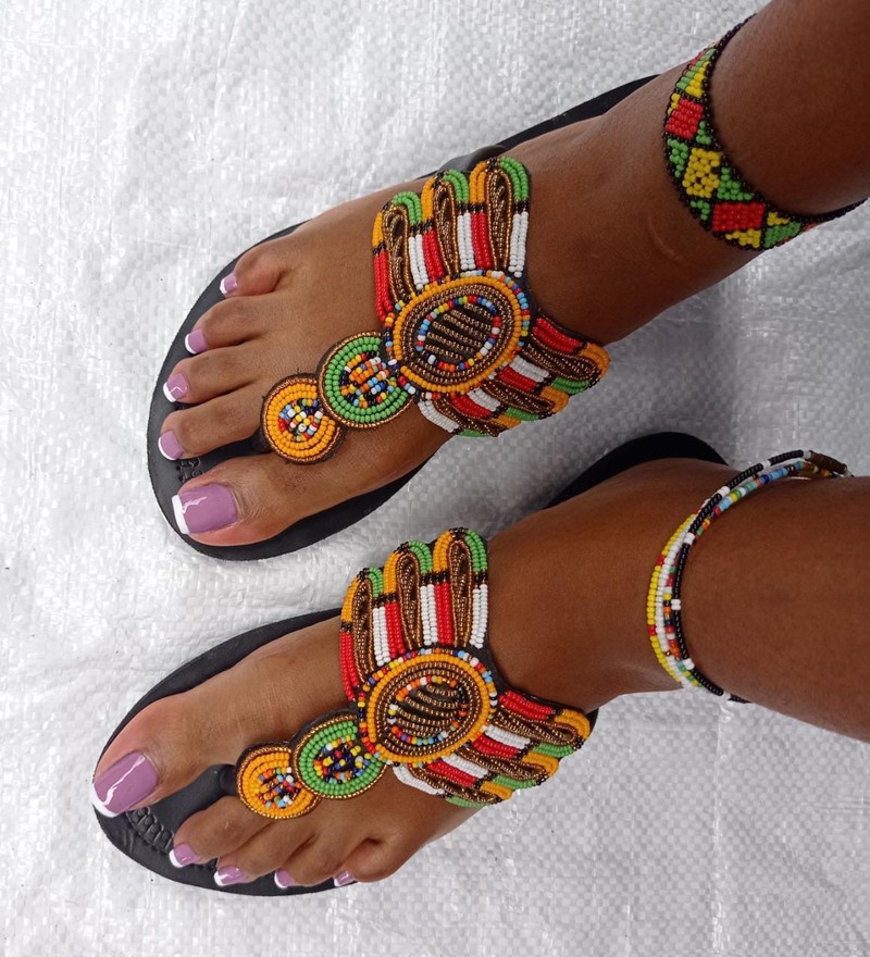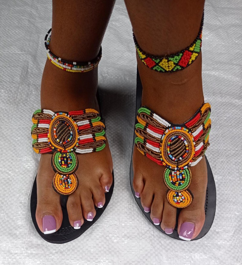 Sandales en perles africaines, sandales femmes, cadeau pour elle
