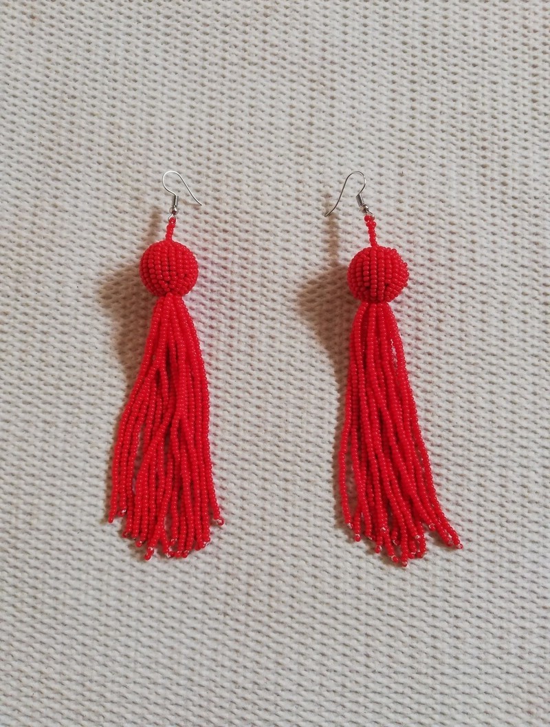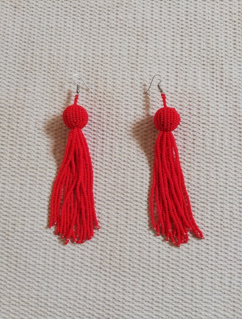 Beaded Tassel earrings, African earrings, Beaded earrings, Orange earrings, Boho earrings, Gift for her, Fringe earrings