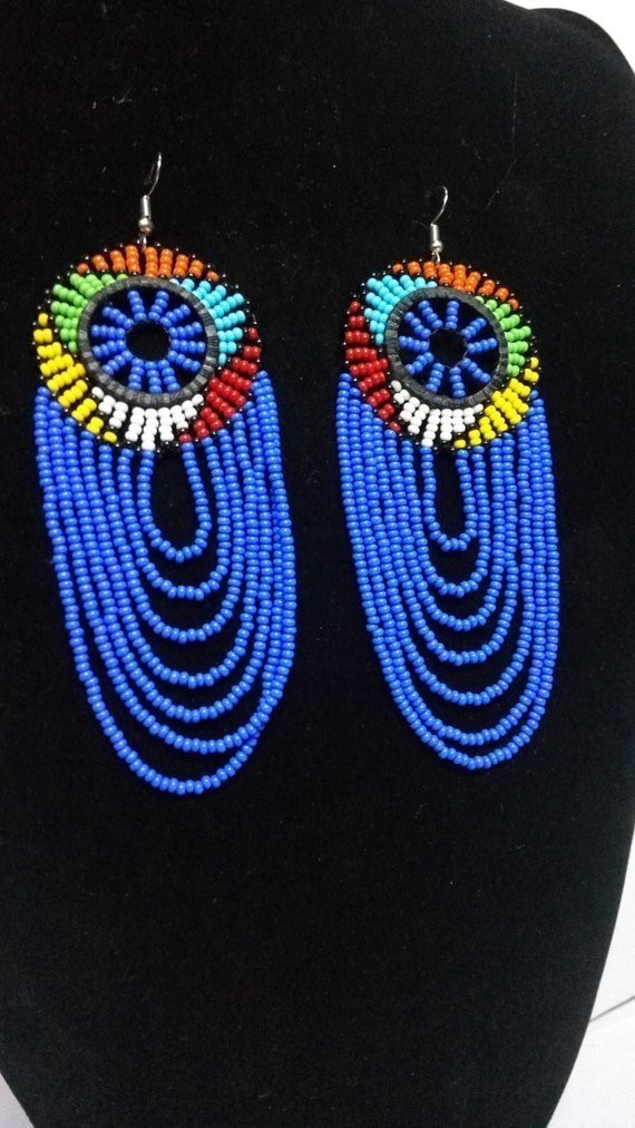 Beaded Tassel earrings, African earrings, Beaded earrings, Boho earrings, Gift for her, Fringe earrings